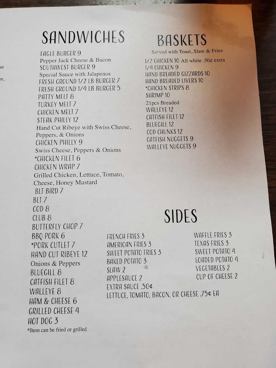 Whether you’re stopping by for a laid-back lunch or settling in for a filling dinner, options like the crispy onion rings, generous rib eye steak, or the popular walleye dinner with a baked potato make for a comforting experience. The menu also features sandwiches ranging from the iconic Eagle Burger with curly fries to the Philly cheese sandwich, alongside lighter choices like fresh salads from the all-you-can-eat salad bar.